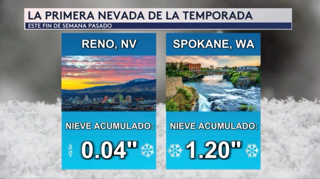 •¡Las ciudades de Reno en Nevada y Spokane en Washington registraron sus primeras nevadas de la temporada este fin de semana pasado!