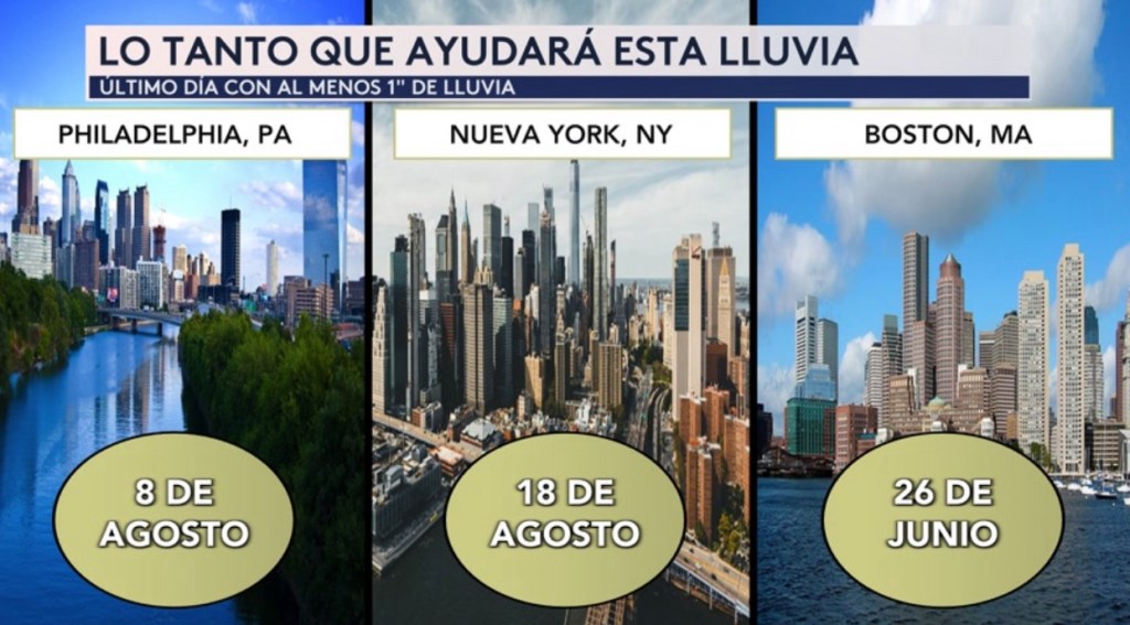 •Fue un periodo extremadamente seco para estas ciudades, ya que pasaron más de un mes sin lluvia. Antes de ayer, Nueva York pasó 32 días sin lluvia, Filadelfia 42 días y Washington DC 38 días.