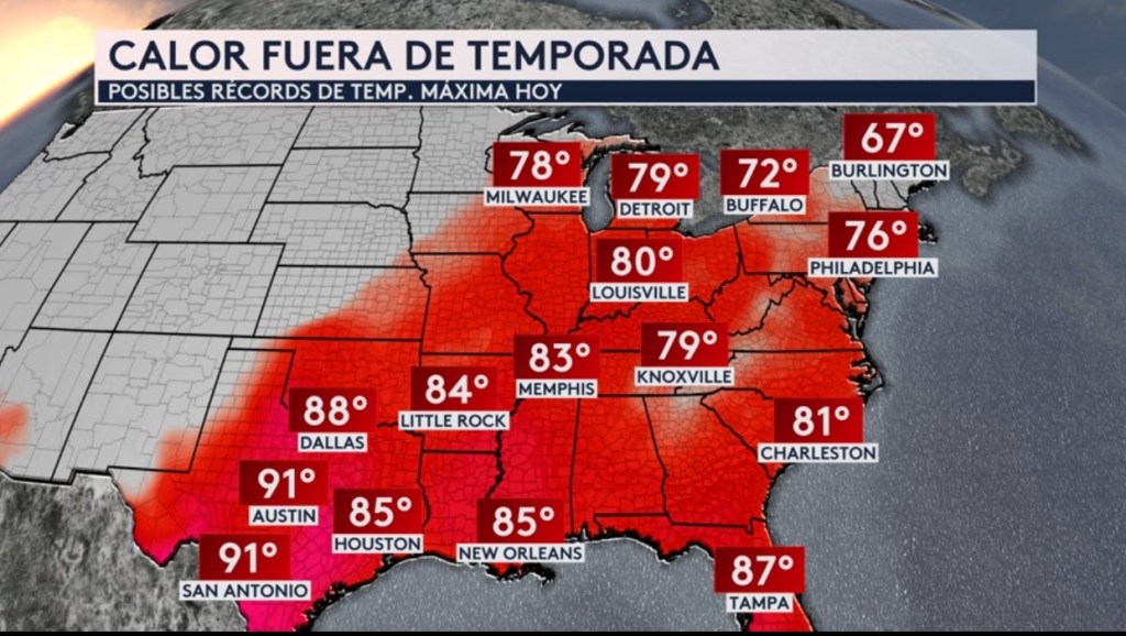 •Con este sistema frontal y un frente estacionario al este del país, habrá dos zonas de fuertes lluvias que estaremos monitoreando para las posibles inundaciones. Desde Texas hasta Kansas y desde el norte de Florida hasta Carolina del Sur.