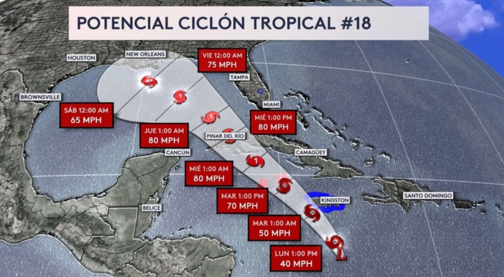 •Todavía se pronostican hasta 4 pulgadas o 100 milímetros de lluvia hasta el sábado para el occidente de Cuba que incluyen las provincias de Pinar del Río, Artemisa, La Habana y el sur de Matanzas.