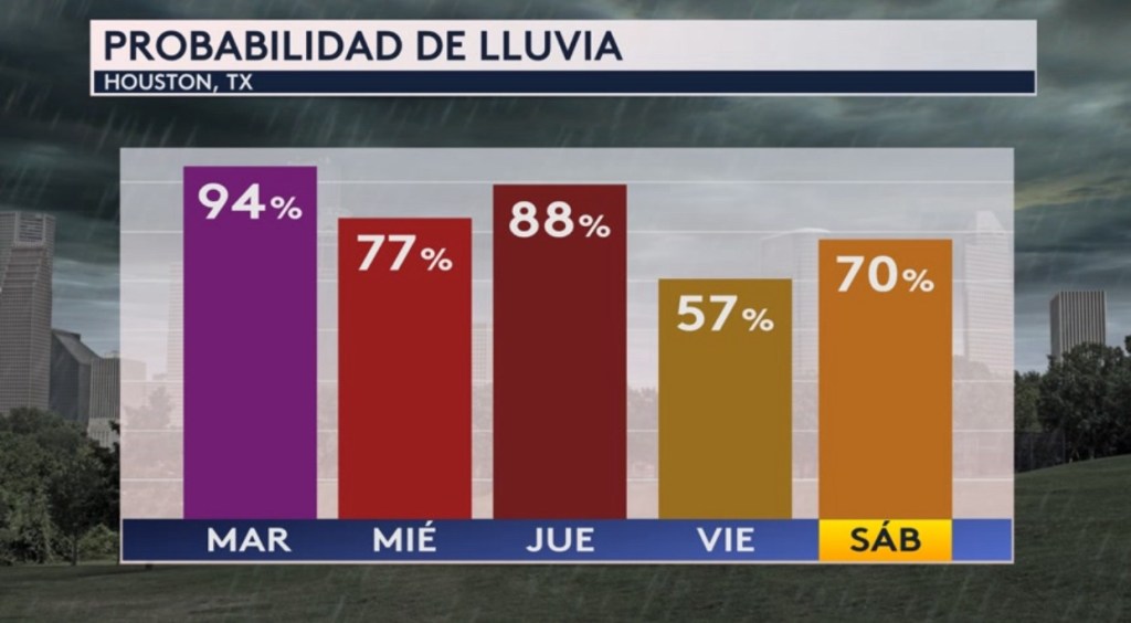 •Al contrario, la lluvia se mantiene en el pronóstico de Houston hasta el fin de semana
