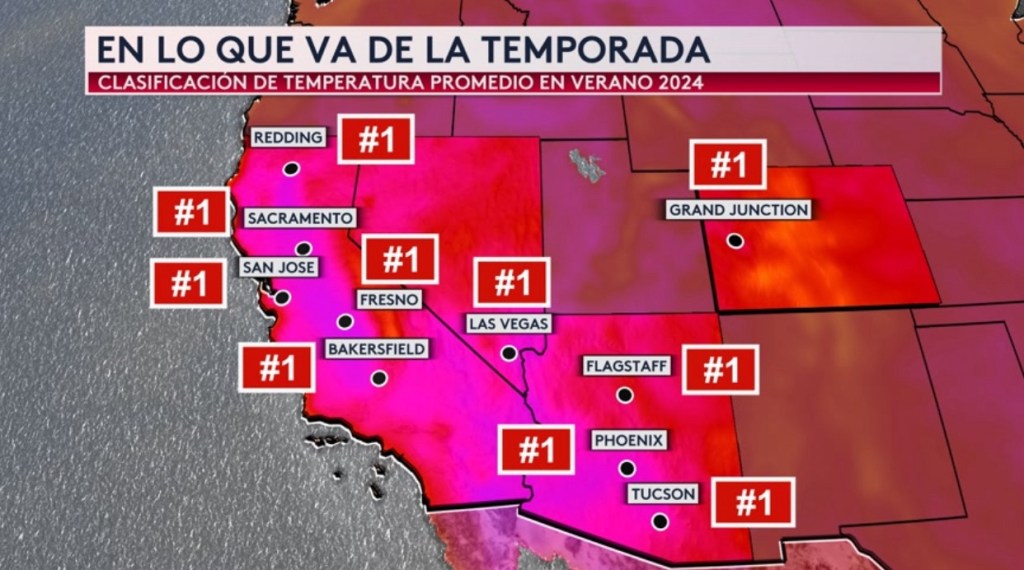 •Ha sido el comienzo de temporada más caliente para ciudades como Phoenix, Las Vegas, Sacramento y San José. Es decir, si el verano se acabará hoy, será el verano más caliente en la historia para estas ciudades