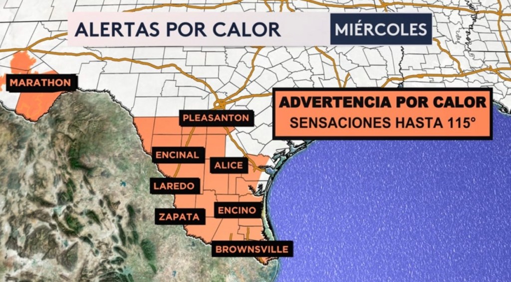 •No solo se está sintiendo el calor en el noreste, pero también al sur de Texas donde hay una advertencia por calor con sensaciones térmicas llegando hasta los 115° hoy