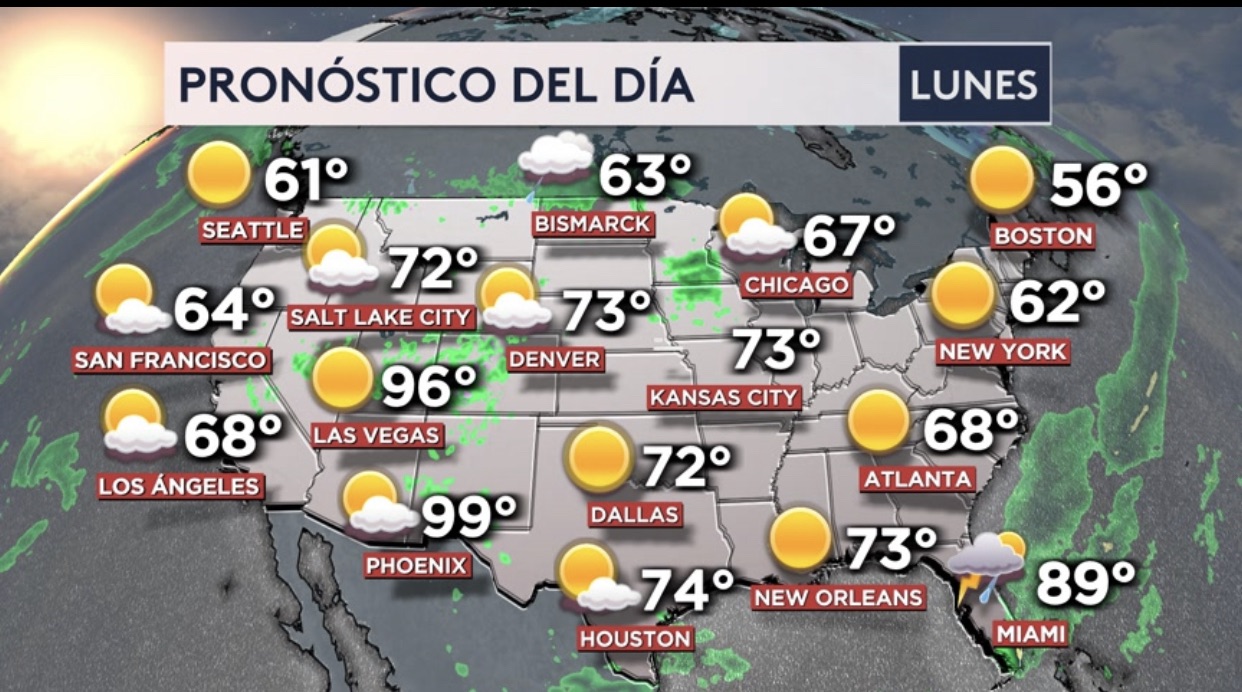 •Habrá un riesgo de calor moderado a alto el lunes para el sur de Texas donde temperaturas máximas pudieran estar entre los 90° y 100°