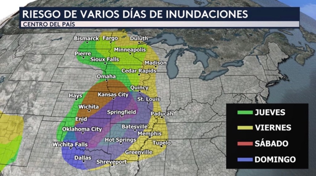 •Solamente estaremos vigilando algunos sectores a través del país hoy para el riesgo de tormentas eléctricas y serán los mismos donde las precipitaciones se encuentran esta mañana, excepto en el sur de Florida donde no se reportan lluvias ni tormentas esta mañana pero pronosticamos su desarrollo esta tarde. Ciudades como Fargo en Dakota del Norte, Sioux Falls en Dakota del Sur, Grand Island en Nebraska, Hays en Kansas, Miami en Florida y Port Angeles en la península Olímpica de Washington estarán bajo la amenaza de experimentar descargas eléctricas. Recuerden que cuando escuchen un trueno, ¡refúgiense inmediatamente!