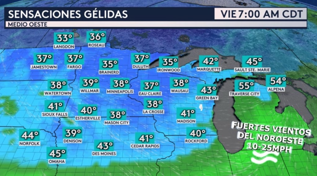 Para el domingo el riesgo de inundaciones repentinas solo pertenecerá al norte y centro de las planicies incluyendo ciudades como Fargo, Bismarck, Rapid City, Sioux Falls, Lincoln y Salina.