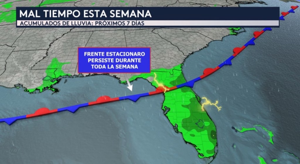 •No solo en Florida sino también a través de las Montañas Rocosas y en las planicies estaremos vigilando las fuertes lluvias por día debido a un patrón inestable en los niveles altos de la atmósfera. Desde hoy hasta el domingo habrán riesgos de mínimos (nivel 1 de 4) a leves (nivel 2 de 4) de inundaciones repentinas.