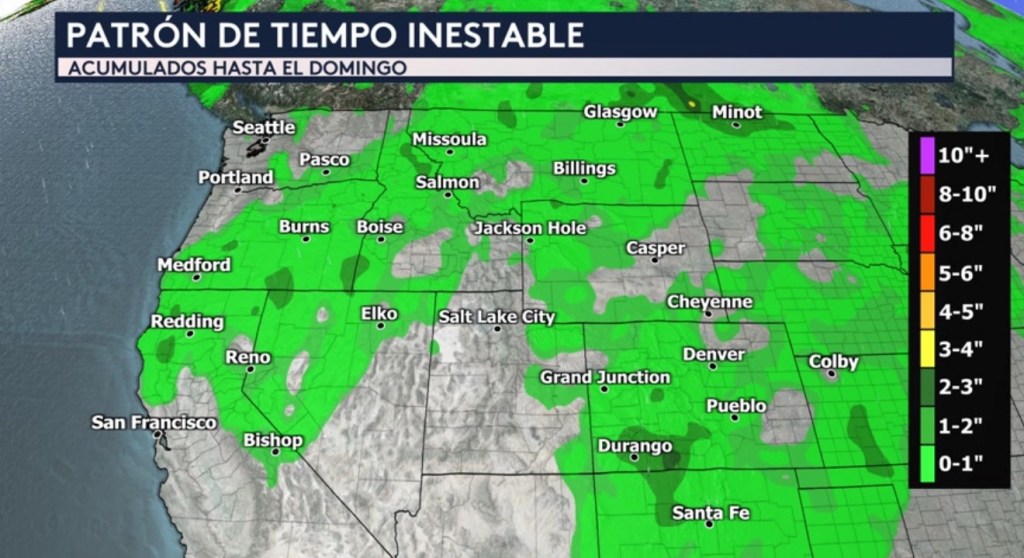 Para el día de hoy, ciudades que incluyen Albuquerque, Ruidoso, El Paso, Grand Junction, Rapid City, Billings, Missoula y McCall se encuentran bajo riesgo.