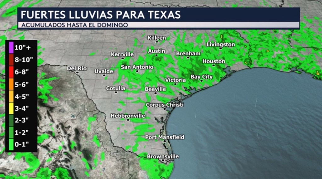 •Nuestro modelo de pronóstico nos muestra que los acumulados más altos entre hoy y el lunes por la noche pudiera ocurrir hacia el centro de Texas donde hay la posibilidad de que se acumulen entre 3 a 6 pulgadas en zonas aisladas. Desde el este de Texas hacia las costas de Alabama y Florida pudiéramos ver acumulados de lluvia generalizados de entre 1 a 2 pulgadas con totales aislados más altos de hasta 2 a 4 pulgadas. También veremos esas condiciones lluviosas hacia el sur de Florida, donde hay la posibilidad de que algunas localidades reciban de entre 2 a 4 pulgadas.